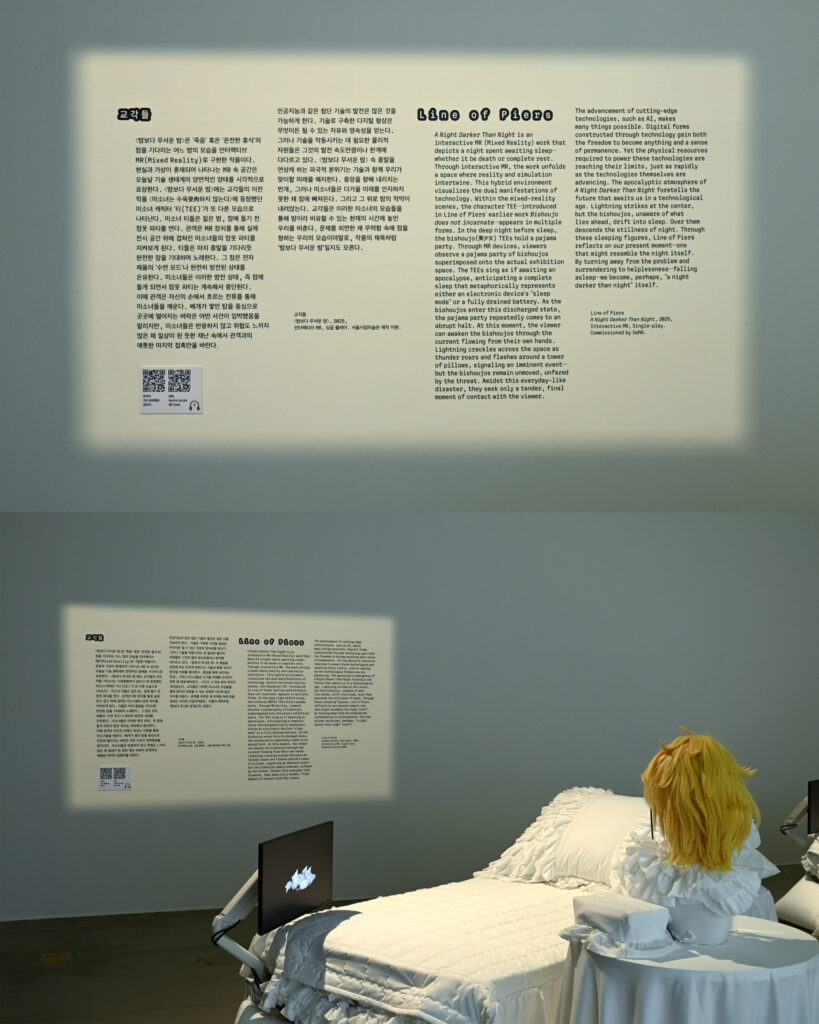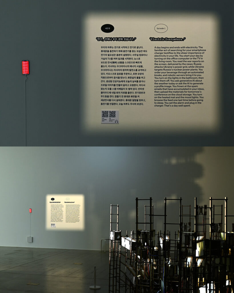 Unlike traditional exhibition docents that provide information unidirectionally, the mobile docent for <Electric Shock> operates through a two-way communication method where visitors learn by conversing with the trained GPT. The act of directly speaking to the AI model and receiving responses highlights the exhibition’s theme and naturally integrates the participant into the exhibition itself. Through this approach, Everyday Practice sought to create a more multi-layered and novel exhibition experience.