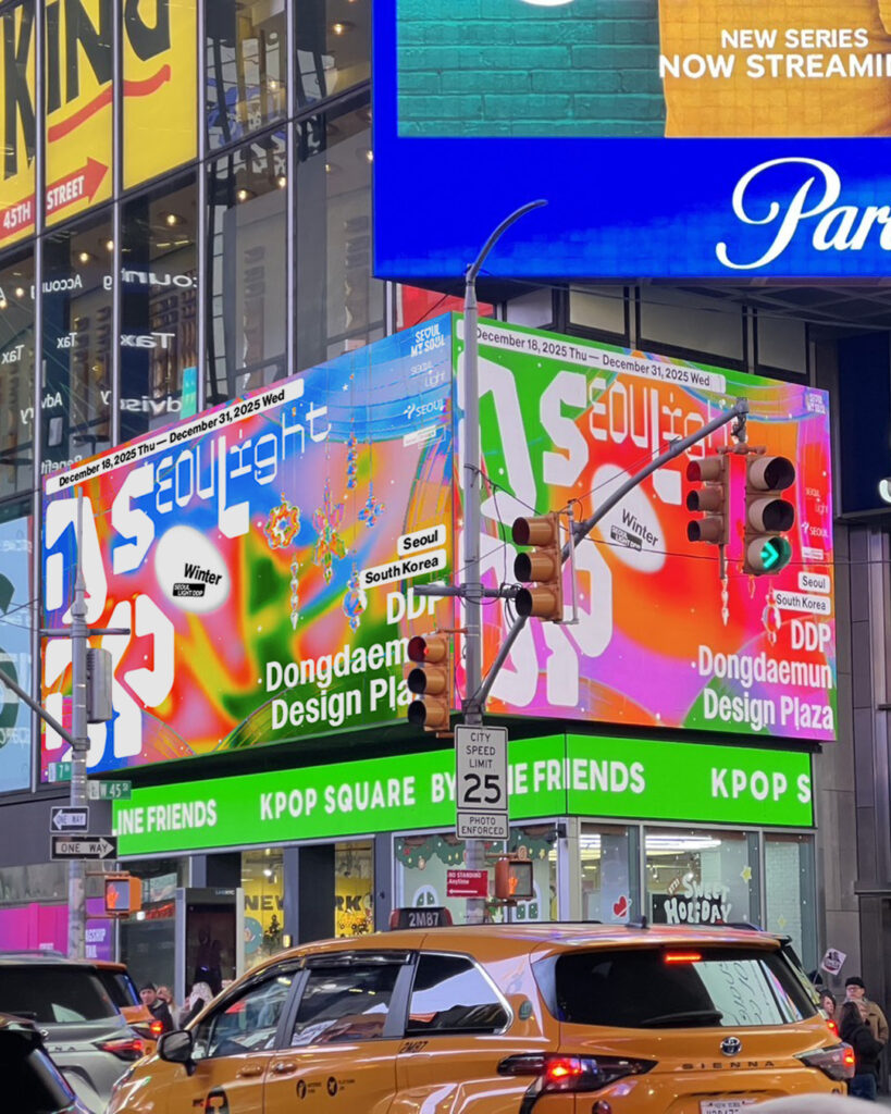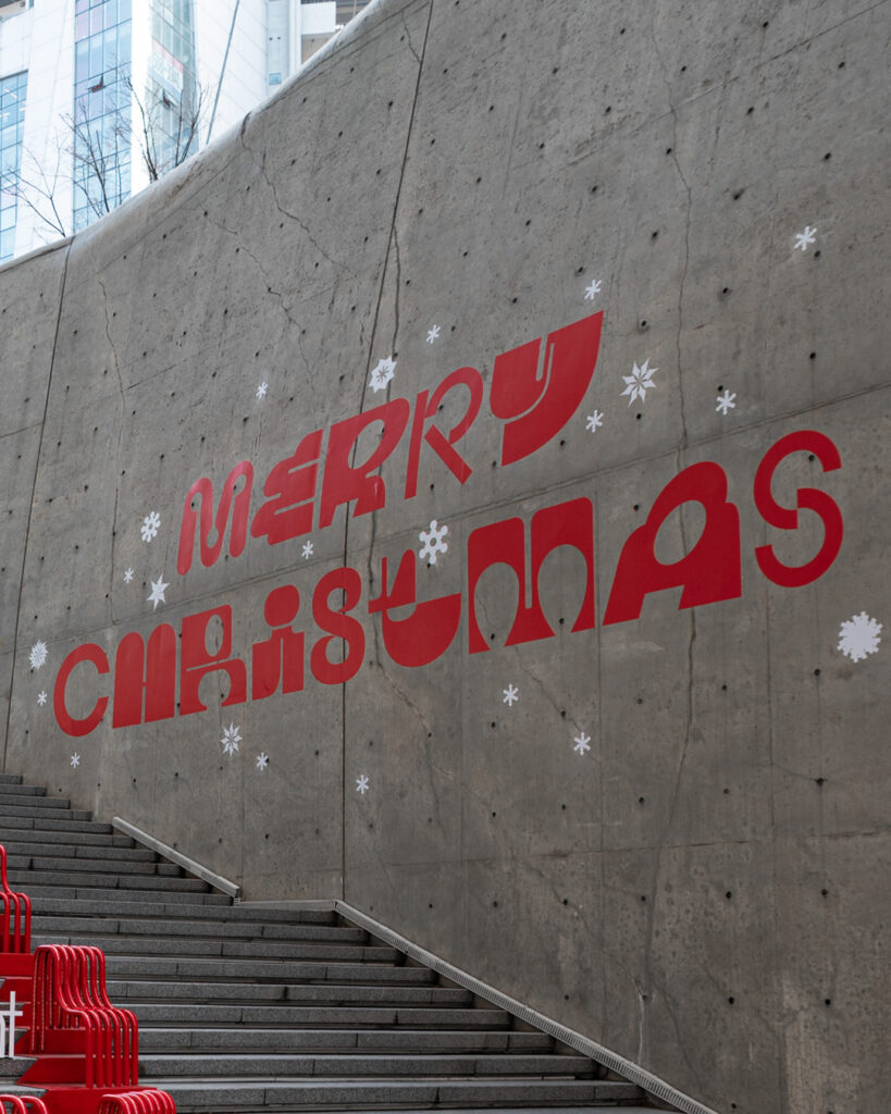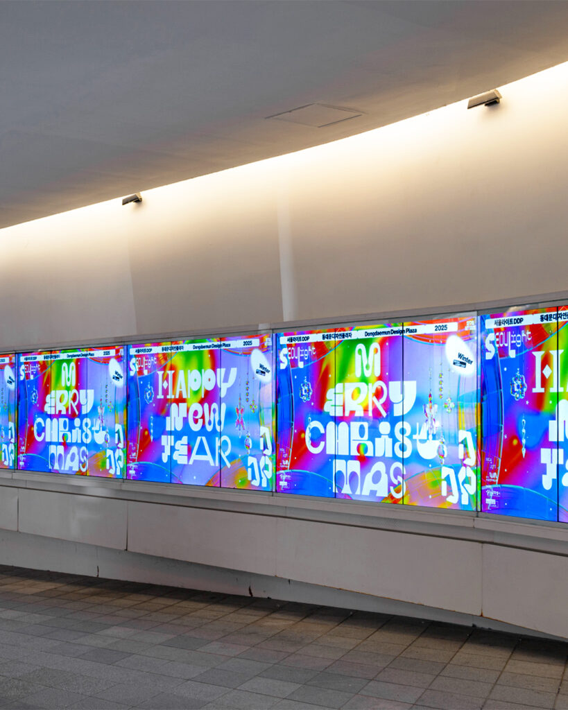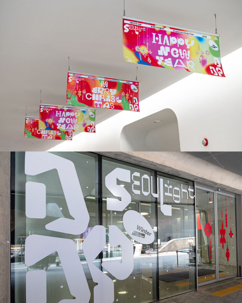 또한 이번 시즌에는 DDP 현장에서 서울라이트를 관람하는 관객을 위한 ‘크리스마스 타운’ 공간의 그래픽 디자인도 함께 진행했습니다. 설치물, 안내 체계, 현장 경험 요소 등을 시각적 언어로 연결해, 키비주얼과 현장 공간이 하나의 통합된 축제로 이어지도록 구성했습니다.