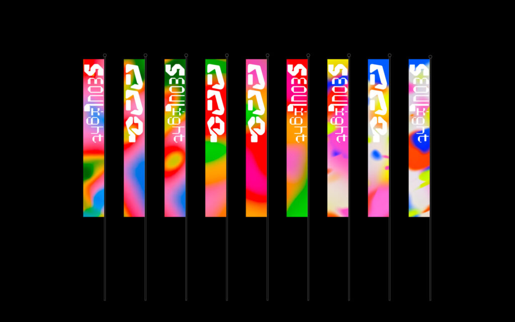 The winter key visual draws on the festive spirit of Christmas, using warm color palettes and abstract forms inspired by ornaments, glass textures, and sparkling lights. These layered elements reflect the materiality and atmosphere of the media façade while establishing a distinct seasonal identity.