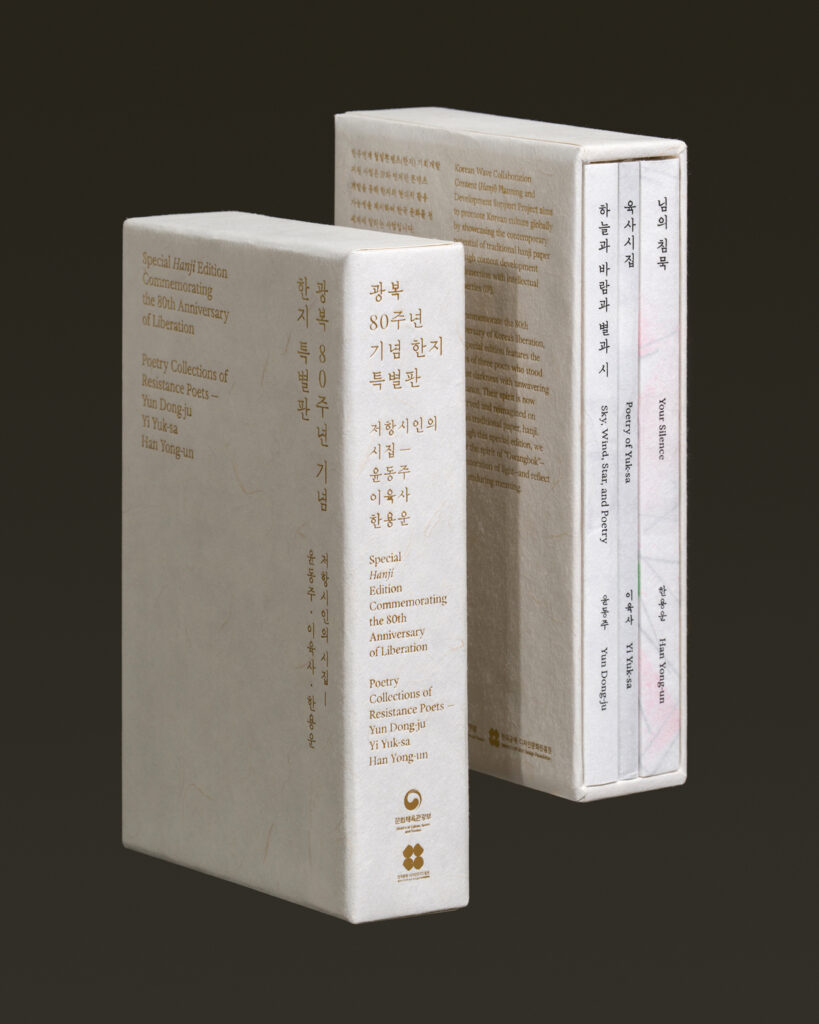 광복 80주년을 맞아 한국 근대문학의 대표 시인인 윤동주, 이육사, 한용운의 시집 — 『하늘과 바람과 별과 시』, 『육사시집』, 『님의 침묵』 — 을 한지 특별판으로 재해석했습니다.