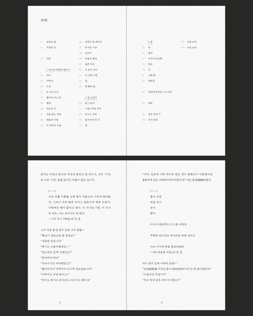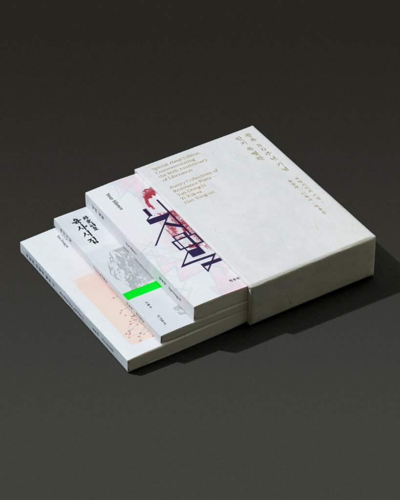세 권의 시집은 각기 다른 디자인 언어로 구성되어, 시인의 개성과 시대적 정서를 시각적으로 드러냅니다. 시간을 견디는 재료인 한지 위에, 저항의 언어가 다시 숨 쉬는 책으로 완성되었습니다.